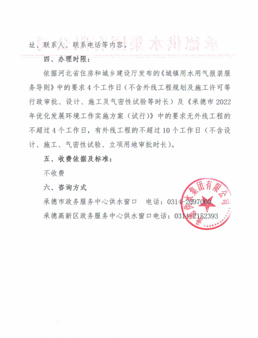 信息來源:承德供水